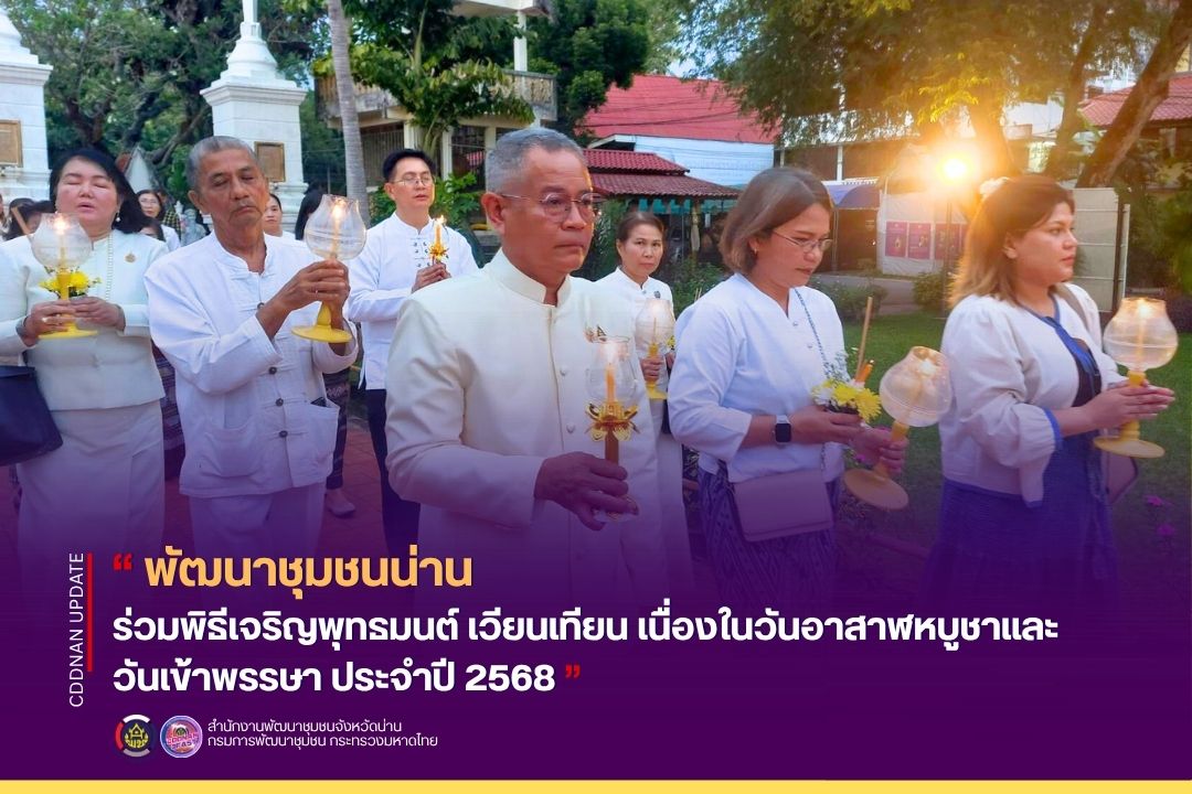 พช.น่าน ร่วมพิธีเจริญพุทธมนต์ เวียนเทียน เนื่องในวันอาสาฬหบูชาและวันเข้าพรรษา ประจำปี 2568