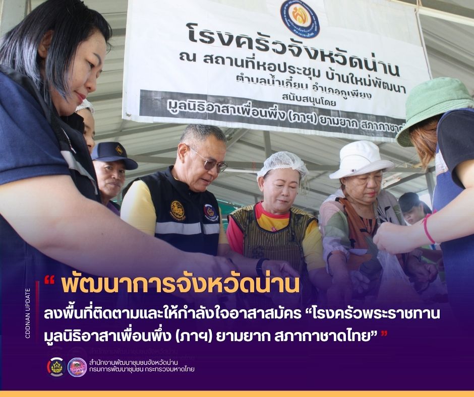 พัฒนาการจังหวัดน่าน ลงพื้นที่ติดตามและให้กำลังใจอาสาสมัคร “โรงครัวพระราชทานมูลนิธิอาสาเพื่อนพึ่ง (ภาฯ) ยามยาก สภากาชาดไทย”