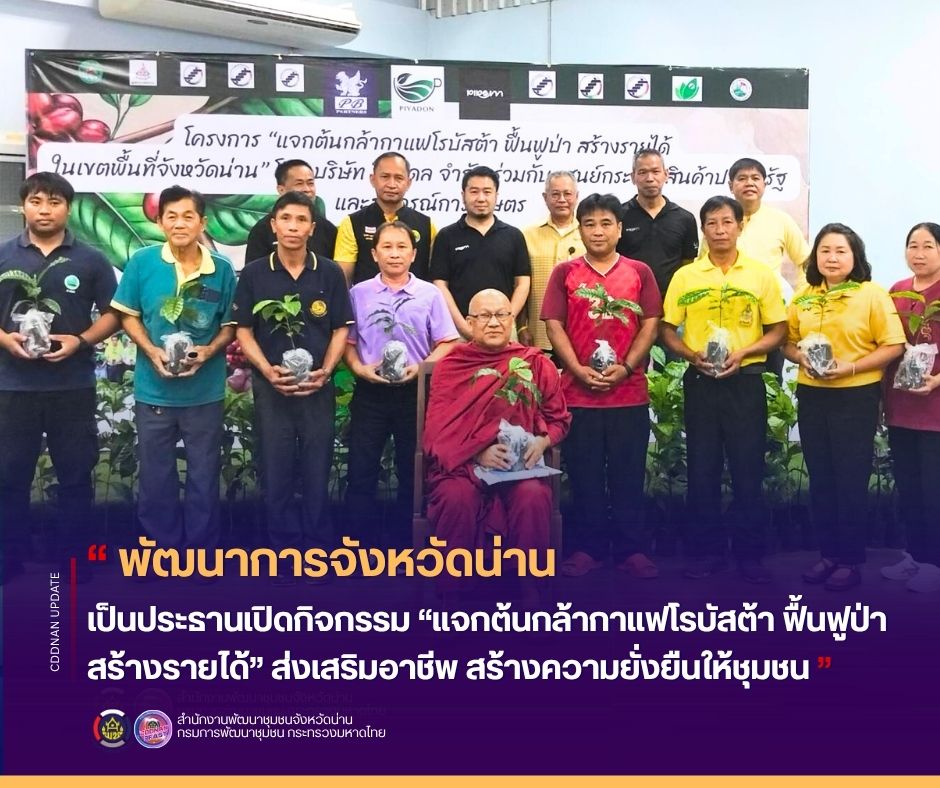 พัฒนาการจังหวัดน่าน เป็นประธานเปิดกิจกรรม “แจกต้นกล้ากาแฟโรบัสต้า ฟื้นฟูป่า สร้างรายได้” ส่งเสริมอาชีพ สร้างความยั่งยืนให้ชุมชน
